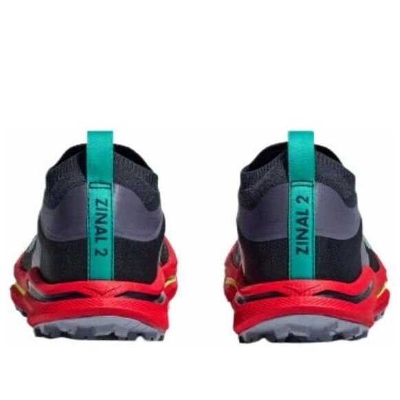 Buty do biegania w terenie Hoka Zinal 2 zapewniają lekkość, precyzję i lepszy zwrot energii. Agresywna, przyczepna podeszwa zewnętrzna Vibram Megagrip, elastyczny kołnierz dzianinowy i responsywna podeszwa środkowa z pianki EVA zapewniają doskonały komfort i przyczepność. Niższa wysokość podeszwy i wyższe wypustki poprawiają wydajność.